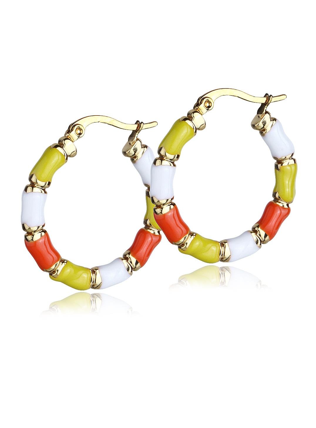 Renkli Boncuk Dizi Çelik Halka Küpe